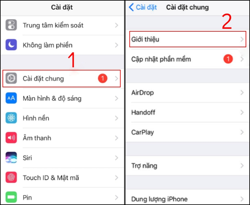 Lấy số IMEI hoặc số Serial: Trên iPhone, vào mục “Cài đặt” → “Cài đặt chung” → “Giới thiệu” để xem số serial hoặc IMEI của thiết bị.